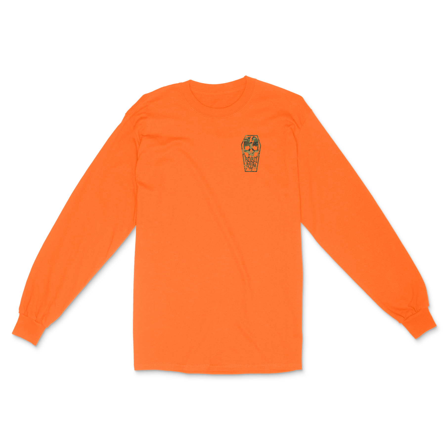 HI-VIS ORANGE CAMO SKULL COFFIN LS T-SHIRT